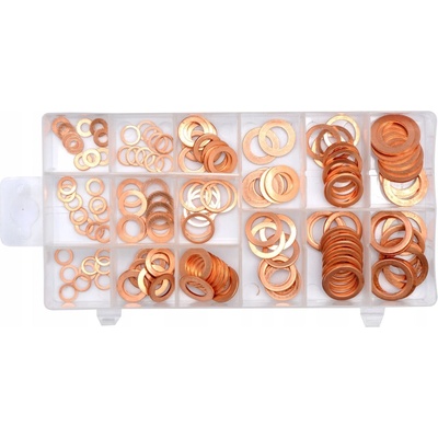 Sada 150 ks těsnicích podložek zhotovených z mědi. Vše je přehledně uspořádáno v plastovém kufříku. Obsah sady - 10 x podložka 5 x 10 x 1 mm - 10 x podložka 8 x 11 x 1 mm...