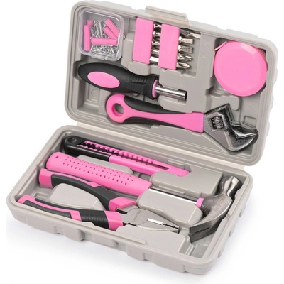Sada ručního nářadí různých druhů (kladivo, kleště, šroubovákové bity a další), růžovo-černá, 20 dílů v uzavíratelném pouzdře – SIXTOL HOME PINK SX3020 Atraktivní a praktická...