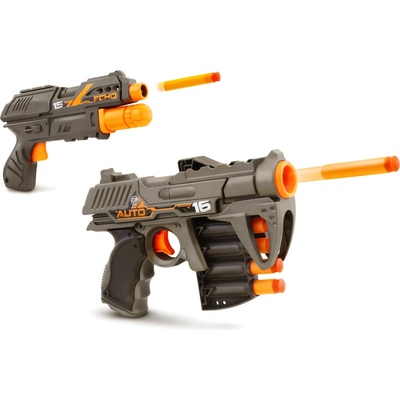 Pistole na pěnové náboje set. Balení obsahuje 2 pistole a 16 pěnových nábojů. Auto scout - zásobník na 6 nábojů, natažení hlavně před každým výstřelem. Výstřel stiskem...