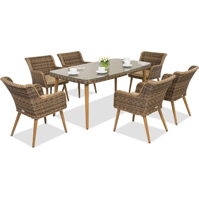 Set kvalitního zahradního nábytku Cordoba 6 značky Garden Point je v tmavě hnědé barvě s mírně kontrastními světlejšími polštářky. - 6 židlí + stůl - Odolnost vůči...