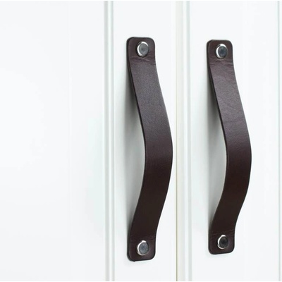 Nábytková kožená úchytka NATURE - Hranatá tmavě hnědá Nábytková kožená úchytka/knopka v tmavě hnědé barvě s hranatým ukončením. Součástí balení jsou okrasné krytky šroubku...