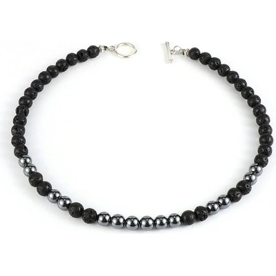 Pánský náhrdelník vyrobený z pečlivě vybraných minerálních kamenů, lávy a hematitu. Hematit je velmi účinný ochranný kámen, který brání negativní energii. Uvádí do rovnováhy...