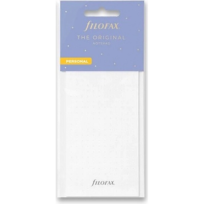 Náplň pro osobní diáře (Personal) Filofax The Original. Rozměry 65 × 150 mm (formát A6). Balení obsahuje tečkovaný poznámkový blok v bílé barvě, 20 listů, 80 g/m2.