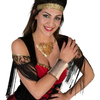 Karneval doplněk pevný kovový náramek ve zlaté barvě Skvěle doplní maškarní kostým egypt královna Kleopatra, římanka, řecká bohyně nebo na stylovou antika párty Velikost cca...