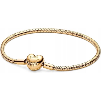 Pozlacený PANDORA náramek z kolekce Moments se srdíčkovým zapínáním. Náramek si vybírejte o 2-3 cm větší než je obvod vašeho zápěstí, abyste měli prostor na korálky. V...