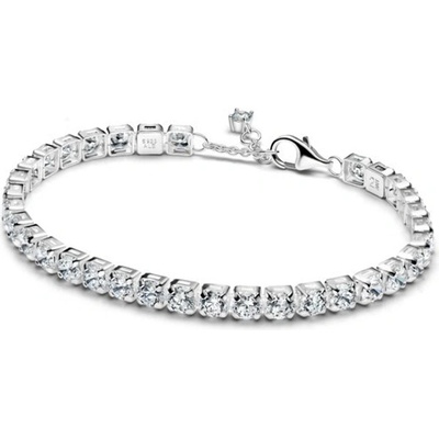 Náš klasický tenisový náramek PANDORA je v novém pojetí vyrobený ze stříbra a zdobí ho třpytivá řada 34 kubických zirkonií s kulatým briliantovým výbrusem, osazených do krapen....
