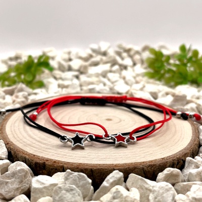 Nadčasové párové náramky s motivem hvězdy Párové provázkové náramky se stříbrnými přívěsky hvězdy vynikají čistým designem a kontrastním barevným řešením. Kombinace černého...