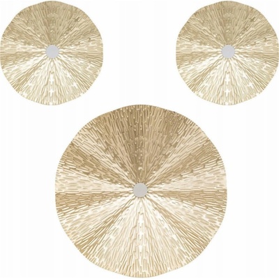 Zlaté dekorace stěn kovové disky - elegantní design s texturovaným vzorem slunečních paprsků Elegantní design: Sada tří zlatých dekorací stěn LESLIE ve tvaru kulatých disků s...