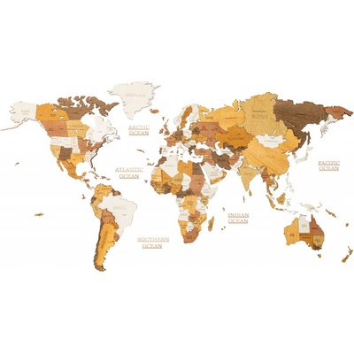 Mapa ze dřeva na zeď 4D dřevěná - nástěnná mapa do pokoje dřevěná 250x125cm - ORIGINAL. Velká mapa pro děti i dospělé - obraz dřevěný jako dekorace.