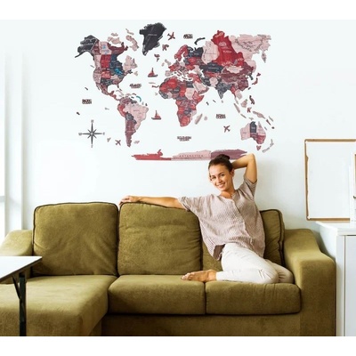 3D mapa světa na zeď 300x175cm - Luxusní dřevěná dekorace URBAN style. Velkoformátová dekorace ze dřeva je ideálním dárkem pro nadšence cestování.
