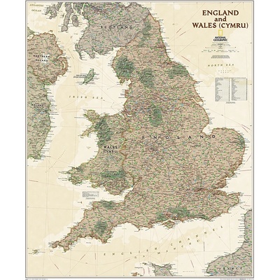 Nástěnná politická mapa Anglie a Walesu. Mapa zahrnuje: - administrativní rozdělení - národní parky, archeologická naleziště - silniční, dálniční a železniční síť - trasy...