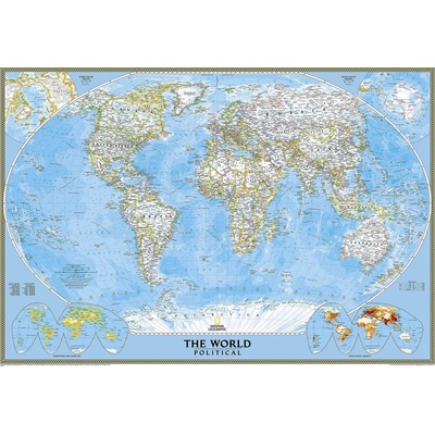 Velmi dekorativní mapa se současným politickým rozdělením světa v historizujícím stylu. Matná laminace zvýrazňuje starobylý ráz mapy. - současné rozdělení hranic států -...
