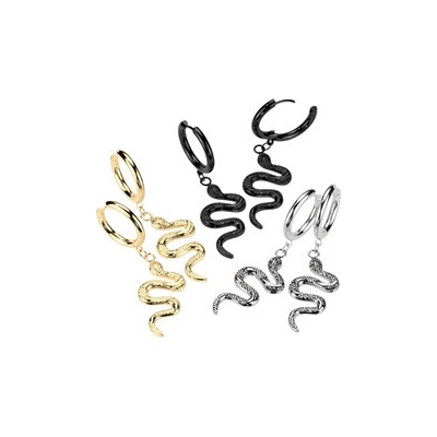 Náušnice ze stříbra 925 mají tvar hada s vyčnívající hlavou a stočeným tělem. Tělo má strukturovaný povrch, je pokryto drobnými výstupky, které představují šupiny. Náušnice mají...