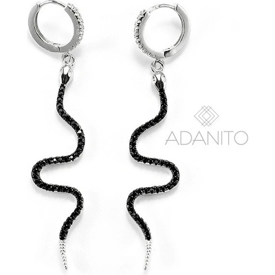 Stříbrné náušnice kroužky jsou vyrobené z rhodiovaného stříbra a jsou zdobené čirými zirkony a přívěskem ve tvaru hada s černými zirkony. Šířka náušnice je 2 mm. Vnější průměr...