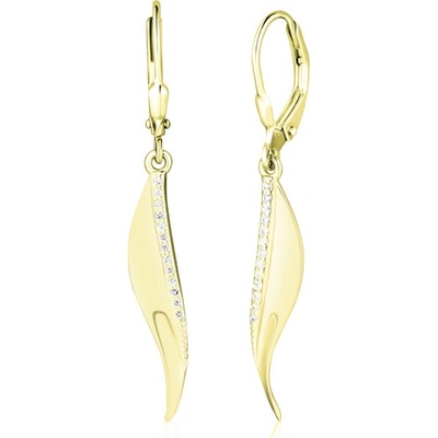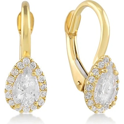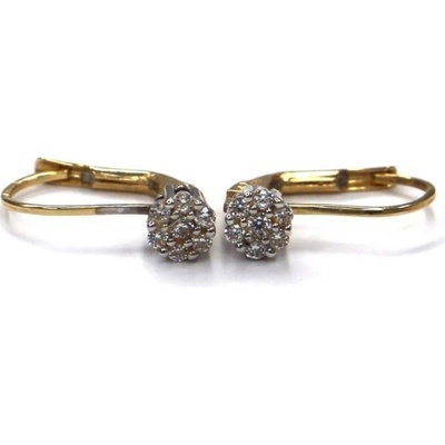 Módní dámské náušnice vyrobené ze žlutého zlata v ryzosti 585/1000. V ozdobě šperku je usazen krásný bílý zirkon, který doplňují drobné bílé zirkonky. Náušnice se zapínají na...