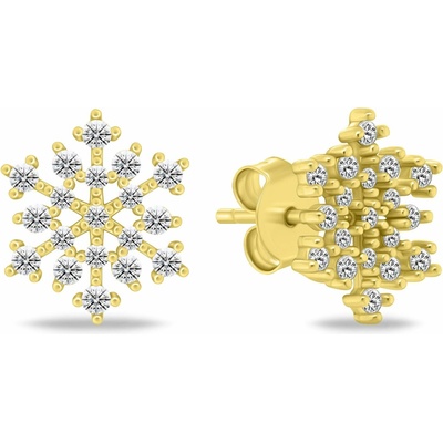 Luxusní dámské náušnice vyrobené ze žlutého zlata v ryzosti 585/1000. Ozdobu náušnice tvoří zářivý bílý zirkon, nad kterým jsou ve třech řadách usazeny drobné bílé kamínky. ...