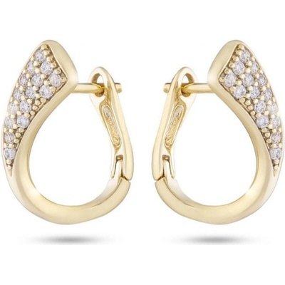Pozlacené náušnice 14k, zkroucená kapka ozdobená zirkony. Velmi kvalitní zpracování. Náušnice mají krásný zářivý vzhled, dodávají eleganci v každém směru. Zapínaní ruský...