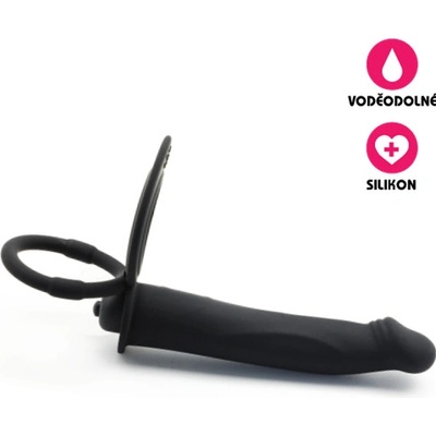 Voděodolný erekční kroužek, vyrobený z černého 100% silikonu obsahující černé vibrační vajíčko napájené jednou AAA baterií. Ke kroužku je připojeno silikonové dildo, které...