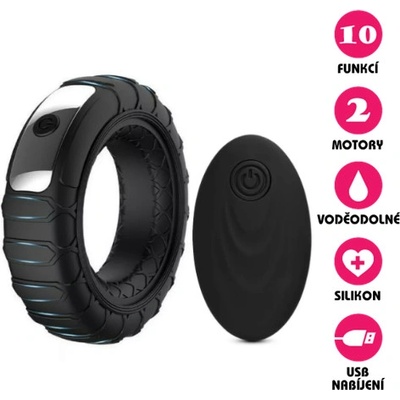 Ergonomicky tvarovaní erekční kroužek vyrobený z tekutého silikonu. Nabízí 10 intenzivních vibračních režimů. Ty se ovládají pomocí dálkového ovladače nebo tlačítkem na těle...
