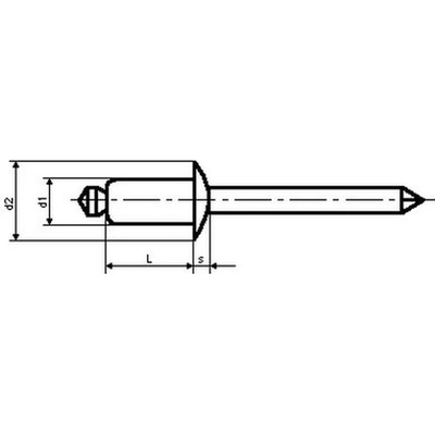 Nýt trhací St/St ocel/ocel s plochou hlavou průměr nýtu, délka nýtu, průměr hlavy a síla materiálu, pro kterou je nýt určený: v tabulce s variantami norma: EN ISO 15979 ...