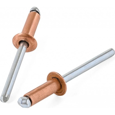 Nýt trhací Cu/St měď/ocel průměr nýtu, délka nýtu, průměr hlavy a síla materiálu, pro kterou je nýt určený: v tabulce s variantami norma: EN ISO 16582 Podívejte se do našich...