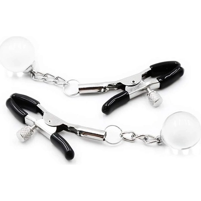 Skřipce na bradavky mají navíc na řetízku pověšená závažíčka. Svým houpáním vás dokonale potrápí, zároveň ale i vzruší. - Barva: stříbrná - Materiál: kov bez obsahu niklu,...