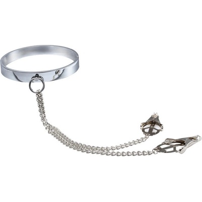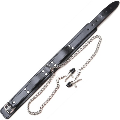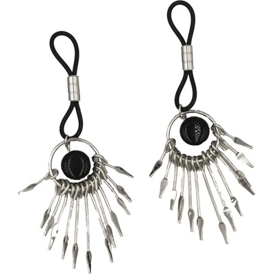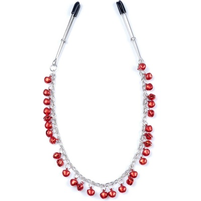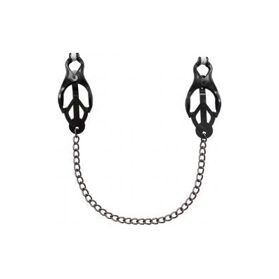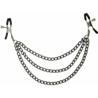 Velké svorky na bradavky spojené řetízkem. Svorky ve tvaru jetele jsou navrženy tak, aby se utáhly při potažení za řetízek. K řetízku lze připevnit závaží, pro zvětšení...
