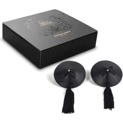 Samolepicí dekorační ozdoby na bradavky. Posaďte je na svoje bradavky a budete si rázem připadat neodolatelně sexy. - Rozměry: průměr 5,5 cm - Barva: černá