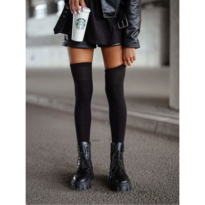 Dámské dlouhé bavlněné ponožky nad kolena s copánky a zdobené stuhou kolem stehna. Nadkolenky vyrobené z vysoce kvalitní bavlny v černé barvě. Příjemný materiál: 75% bavlna +...