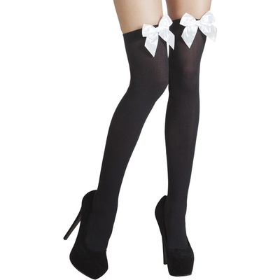 Černé nadkolenky s bílou mašlí. Doplněk pro váš sexy kostým. Tyto sexy černé punčochy s pěknou bílou mašlí doplní váš outfit. Ideální na karneval, maškarní párty nebo do...
