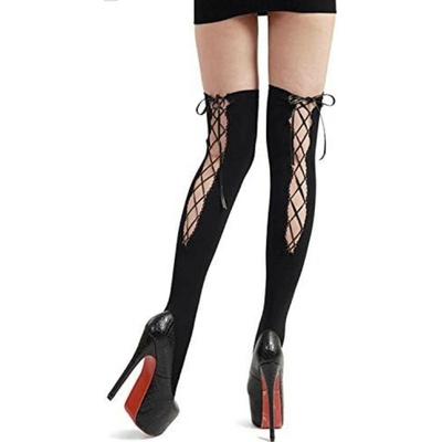 Samodržící punčochy nadkolenky na zavazování Samodržící punčochy nadkolenky Elegantní doplněk Velikost: univerzální Barva: černá Materiál: 88% nylon, 12% spandex