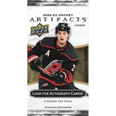 4 karty v balíčku(pokud balíček obsahuje memorabilia či Aurum kartu, neobsahuje celkem 4 karty, ale pouze 3)2022-23 Upper Deck Artifacts Hockey Hobby Balíček Každý box (8...