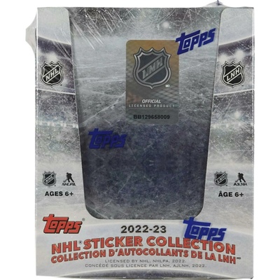 2022-23 Topps NHL Sticker Collection Box obsahuje 250 samolepek (50 balíčků po 5 samolepkách) Každý balíček obsahuje 4 samolepky hráčů a jednu Foil samolepku Sun Pillar!