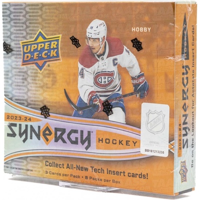 NHL 2023-2024 Upper Deck Synergy Hockey Hobby Box je balení 8 balíčků sběratelských hokejových karet. Každý balíček obsahuje 3 karty. Celkem tak získáte 24 karet. Série Synergy...
