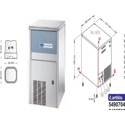 - Tvar ledu: kalíšky - Výkon: 31 kg / 24 h - Kapacita zásobníku: 9 kg Parametry Výrobce N.T.F. Napájení 230 V/1N/50 HZ Příkon 290 W Šířka 387 mm Hloubka 465 mm Výška 687 mm Provedení nerez/plast Hmotnost 38 kg Automatický mycí systém CS ano Chladivo R...