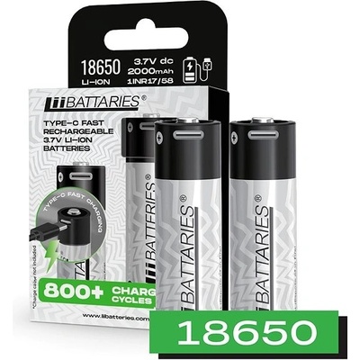 Akum: Li-Ion; 18500; 3,7V; 2000mAh; Ø18,4x52,6mm; 2ks.