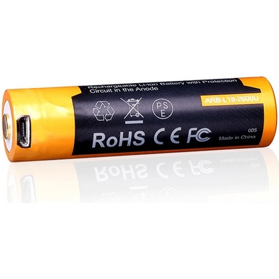 Parametry USB akumulátoru Fenix 18650 2600mAh - Nominální napětí : 3,6 V - Kapacita : 2600 mAh, testováno vybíjecím proudem 0.2C s ukončením při napětí 2,8V a teplotě 25°C -...