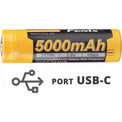 Nabíjecí baterie Fenix 21700 5000 mAh (ARB-L21-5000U) s vlastním nabíjecím USB-C konektorem. Lze ji nabíjet připojením kabelu do USB-C konektoru (např. z počítače, powerbanky...