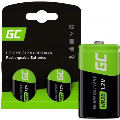 Originální nikl-metalhydridové baterie Green Cell D / HR20 s kapacitou 8000 mAh a napětím 1,2 V Baterie D / HR20 Green Cell si po dlouhou dobu udržují vysoký výkon, navíc jsou...