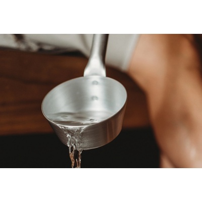 Naběračka je vyrobená z leštěné oceli, speciálně zahnuté pro lepší nabírání vody a s kulatou dřevěnou rukojetí pro snadnější uchopení. Rukojeť je vyrobená z borovice nebo cedru....