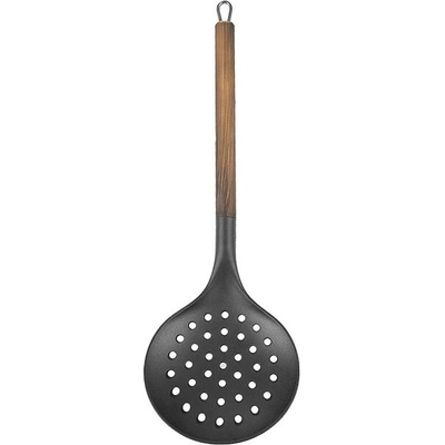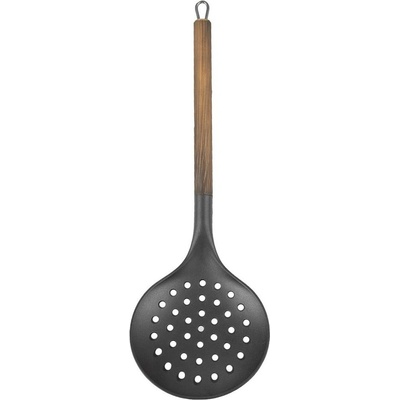 Praktická kuchyňská šumovka z odolného termoplastu PBT s dlouhou rukojetí v dekoru dřeva je ideální pro cezení knedlíků, těstovin a pirohů, nabírání z horké vody i sbírání pěny...
