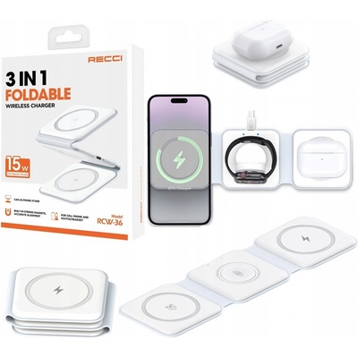 Recci RCW-36 je bezdrátová skládací nabíječka, která ti pomůže zbavit se chaosu na stole i v tašce. Nabiješ s ní najednou telefon, sluchátka i chytré hodinky – a to vše pěkně...