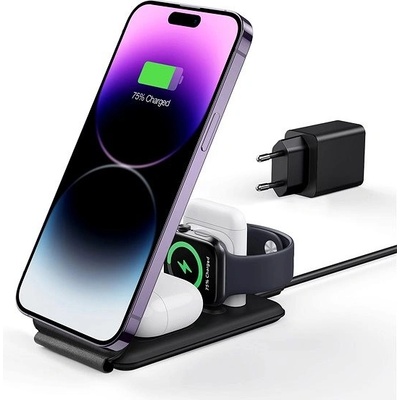 W-126 3v1 skládací bezdrátová nabíječka pro iPhone / Apple Watch / AirPods - 15W - černá od výrobce AppleKing v kategorii Elektronika | Mobily, GPS | Mobilní příslušenství |...