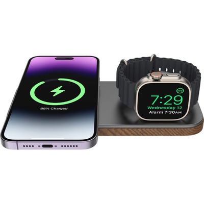 Bezdrátová magnetická nabíječka 3v1 od Cubenest je navržena k nabíjení dvou zařízení a Apple Watch současně.
