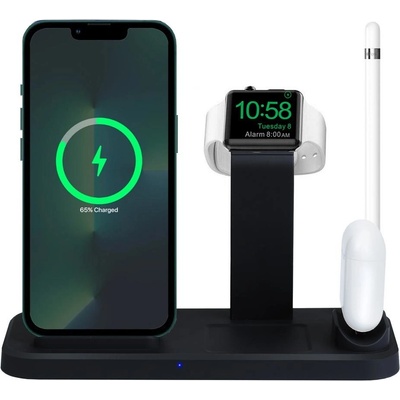 4v1 | Dokovací stanice pro současné nabíjení více zařízení iOS / Android 15W Qi indukční nabíječka Dock pro Apple Watch s prostorem pro vložení originální nabíječky Nabíjecí dok...