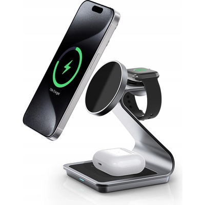 Bezdrátová nabíječka TGM POWER 15W 3v1 kompatibilní s MagSafe. Bezdrátová nabíječka s oboustranným designem nabízí možnost nabíjet iPhone, Apple Watch, AirPods a další...