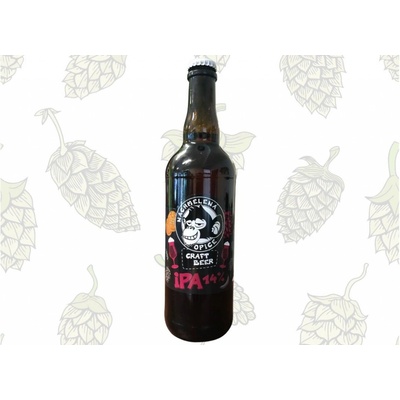 Pivní láhev 0,75l - Nachmelená opice IPA 14° Vznešený pivní styl IPA s americkými chmely. Svrchně kvašené pivo s výrazným aroma po pryskyřici (až borovici), citrusech a tropickém ovoci. Typická je vyšší až suchá hořkost. Parametry produktu Nachmelená opice IPA...