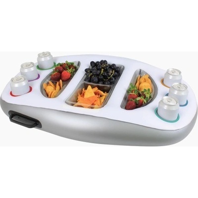 Nafukovací plovoucí bar pro servírování nápojů a potravin v pohodlí bazénu či vany. Nafukovací bar s tvarovanými prostory pro potraviny a nápoje může plavat ve vodě, nebo bezpečně spočívat na římse bazénu či vířivky. Obsahuje částečnou vodní náplň pro stabilitu a dvě...