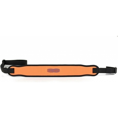 Praktický lovecký řemen na pušku - hnědý/oranžový. Pohodlné rozložení váhy zbraně díky speciální neoprénové výztuži. Šířka pro montáž do oka je 2,5 cm. Vyrobeno v ČR.