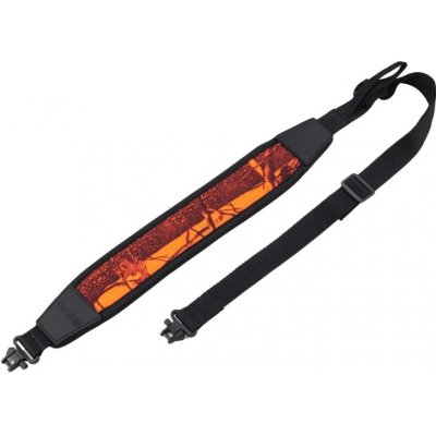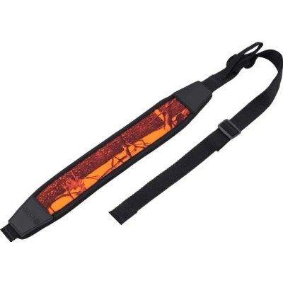 Praktický lovecký řemen na pušku - hnědý/oranžový. Pohodlné rozložení váhy zbraně díky speciální neoprénové výztuži. Šířka pro montáž do oka je 2,5 cm. Vyrobeno v ČR.